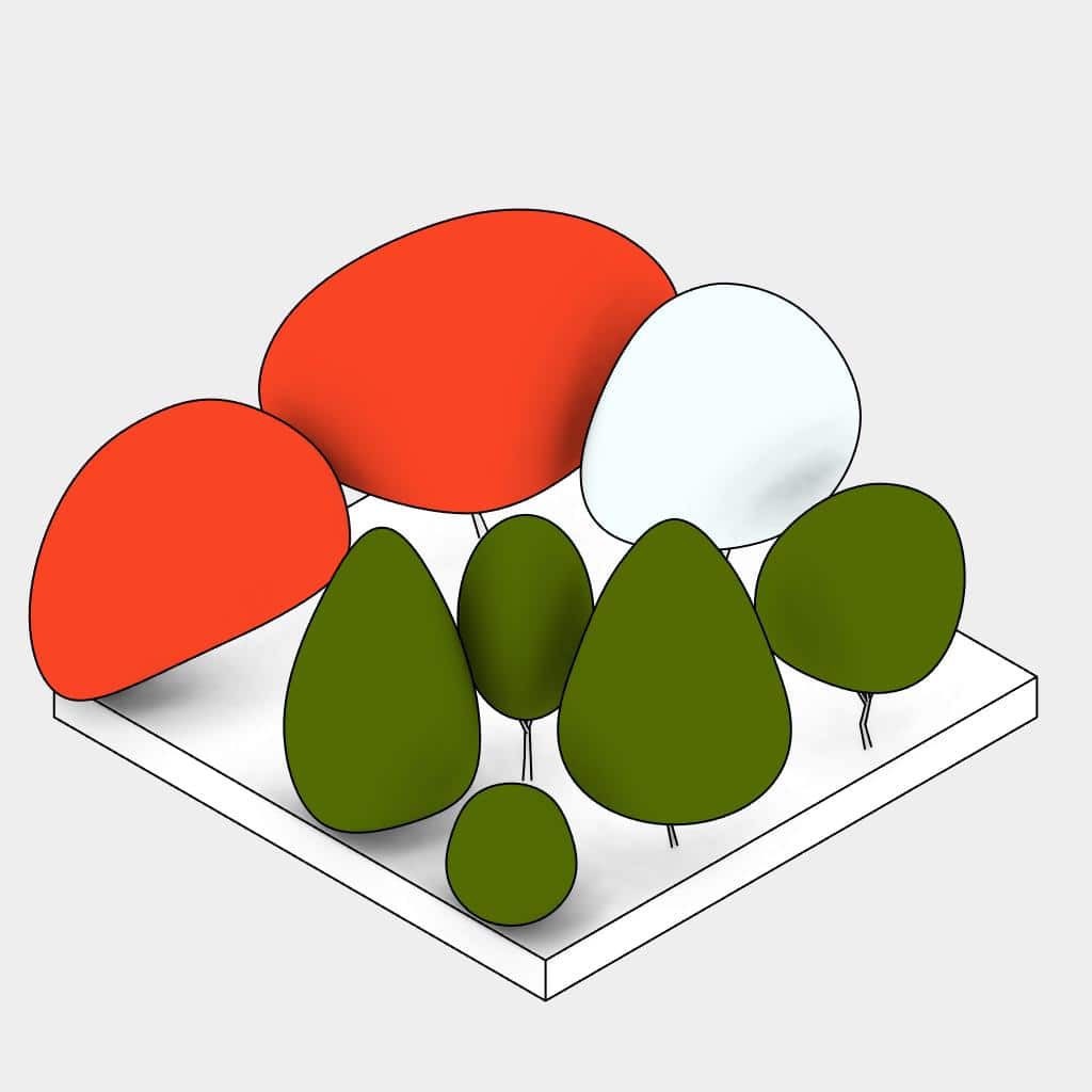 Activate or deactivate leaves with simple instance visibility parameters. One single Revit family, 3 variations in form. Create Diversity in your Architectural, Urban or Landscape Projects!