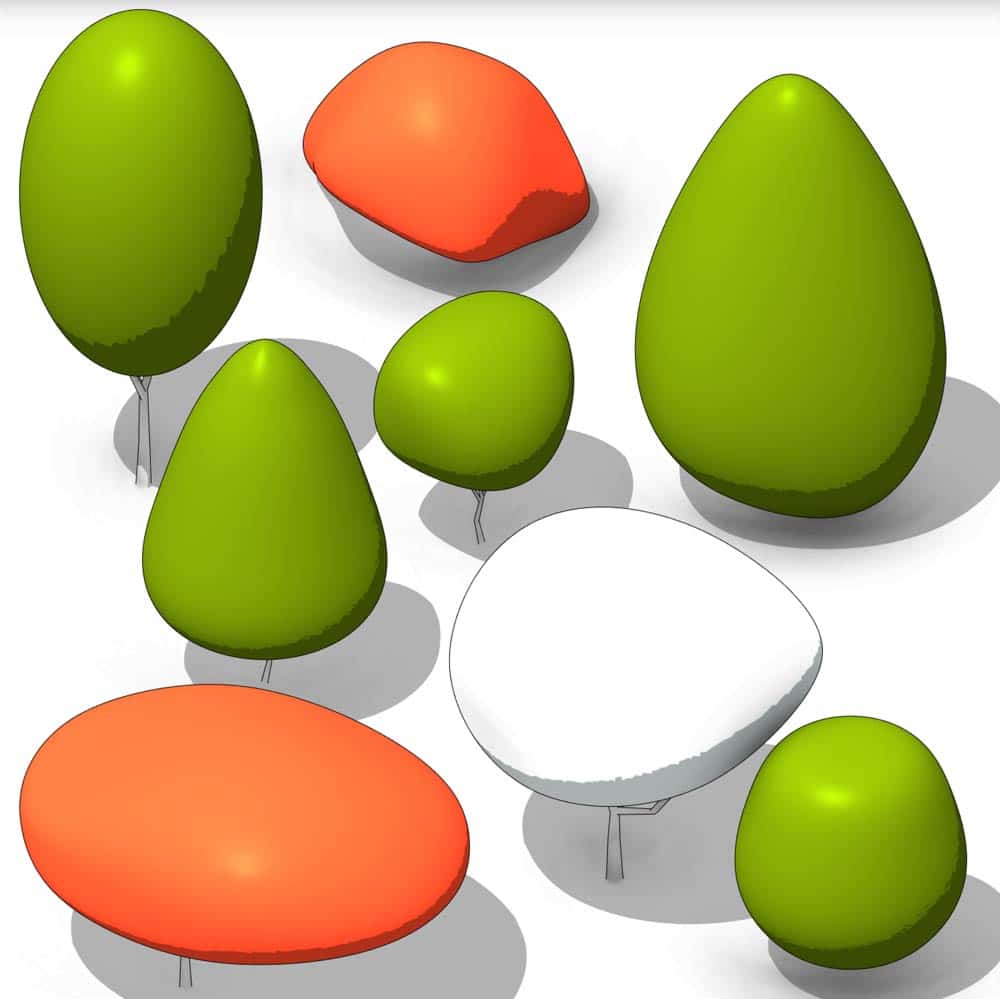 One of a kind Realistic & Organic Revit Families that allow you to apply different materials as Instance Parameters on the models. This makes it possible to duplicate the Revit Family with different Materials | arquitree