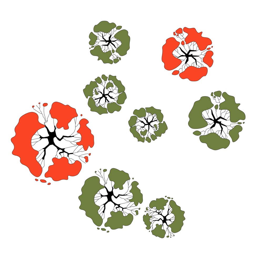 In the Revit Coarse Detail Level these Planting Families show a Conceptual Form as the Crown. It accepts Category Overrides while the Trunk doesn’t. This allows you to apply color to the all Planting Crowns, keeping the Trunks in the original colors, with just a few clicks. You can also apply Overrides on individual Blocks or simply create duplicates with different colors by changing the Instance Material Parameter. Keep your Conceptual and Detailed Projects synchronized!