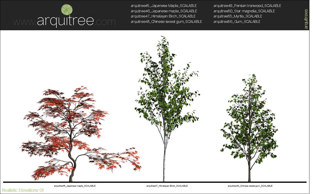 8 Revit Asian Tree Families for your Architecture, Urban and Landscape Designs. This Revit Pack contains the following Families:
